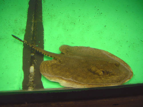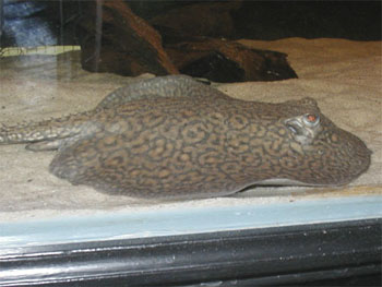 Biology: Husbandry: How to find a freshwater stingray Wild-caught freshwater stingrays can usually be obtained by your local fish store upon request. You also can order them directly from various importers over the Internet, but keep in mind that in many cases, you are responsible for picking the fish up at the airport. In addition, there are no guarantees that your fish will be alive and healthy upon their arrival. Several stingray species, such as the ever-popular Potamotrygon motoro, have frequently bred in captivity. If possible, it is better to purchase tank bred animals for a number of reasons. They have not endured the extreme stress of importation, and they are already used to aquarium conditions and the food they will receive in captivity. In addition, they are not likely to carry many of the diseases and parasites that often accompany wild-caught animals. Overall, they have a better survival rate, and are consequently less of a financial risk. Health check Choosing an adequately-nourished, healthy animal is crucial for success in keeping stingrays. Here are a few things to consider before you buy: Appetite -- Stingrays in good condition are perpetually hungry, so lack of appetite in a fully acclimated animal is usually an indication that something is wrong. A well-nourished ray should have a somewhat rounded back and a thick tail base. Severely protruding pelvic bones (two points on either side of the tail base) or an indentation on the forehead between the eyes are both telltale signs that the ray has not been receiving adequate nutrition. The appearance of disproportionately large gills indicates that the animal was once in good health, but has lost a great deal of weight over a relatively short period of time, probably due to the stress of being shipped.