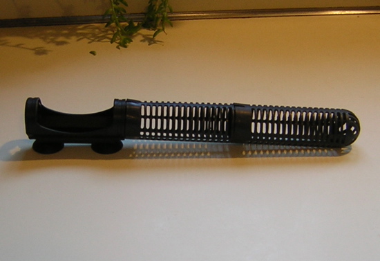 A heater guard, made by Tronic. Substrate As far as substrate goes, rays seem to enjoy a thick layer of rounded, minimally abrasive sand or gravel in which they can bury themselves if they feel threatened. They also love to dig and blow in the substrate in their constant search for food. If you decide to go with sand, make sure it is free of silica and is suitable for freshwater aquariums (i.e. - no crushed coral sand or other marine substrates). Estes sand or CaribSea's "Torpedo Beach" and "Peace River" will work quite well. Many aquarists keep their rays in bare-bottomed tanks without any major problems. Tanks without substrate can be easier to vacuum, and rays can locate their food more easily, but they don't get much traction when they try to scoot around on the bottom, and they just seem uncomfortable being unable to cover themselves or exercise their natural instinct to dig. Tanks with a more natural atmosphere are also more aesthetically pleasing, at least in my opinion. For these reasons, I recommend going with the substrate over the minimalist look. However, I would like to emphasize that there are advantages and disadvantages to either way of doing things. Water Quality Maintaining good water quality and frequent water changes are the keys to successfully keeping freshwater stingrays. Using a good quality water conditioner during water changes is also extremely important. Most city tap water is treated with chloramines in order to kill any parasites that may be lurking within the water supply. However, chlorine and ammonia are also toxic to fish, rays being particularly susceptible. Water conditioners are designed to render these chemicals harmless to aquarium fishes and invertebrates. I've had good luck with both Amquel Plus by Kordon or Stress Coat by Aquarium Pharmaceuticals. Some regularly aquarists add uniodized salt to their tanks to keep pathogens at bay. This is a good idea if your ray is healing from an injury or fungal infection, but it should not be administered otherwise. As long as you follow proper quarantine procedures and keep the water quality high to begin with, you should not end up with any sick rays on your hands. Since rays are Amazonian fishes, they do best at a slightly lower pH. If you live in an area with extremely hard water, such as the southwestern United States, you will probably need to use reverse osmosis or some other system that reduces the carbonate hardness. You can also try adding some driftwood or a CO2 system to reduce a slightly higher pH naturally. Here are some general guidelines for stingray-friendly water chemistry. They are generally tolerant of some deviation as far as pH and nitrite are concerned, but keeping the ammonia levels extremely low to non-existent is required. I have heard of some ray owners who accidentally allowed the water temperature to drop as low as 65º F without any long-term effects, so you have some leeway there. However, rays really do not do well at temperatures higher than around 83º F.